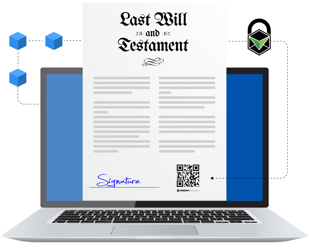 Beneficiaries or executors can scan the QR code and immediately verify the document’s full history and validity.