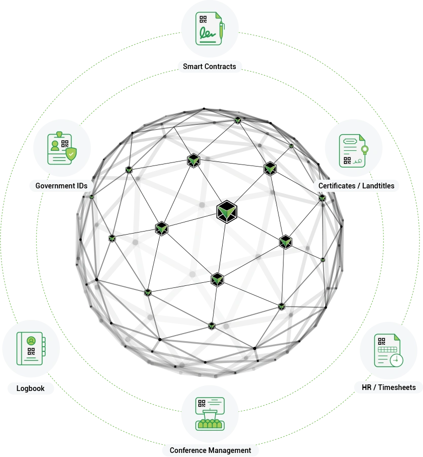 Protect digital certificates, contracts, and organisational records by storing their cryptographic hashes on the blockchain, allowing instant verification and preventing unauthorised modifications.