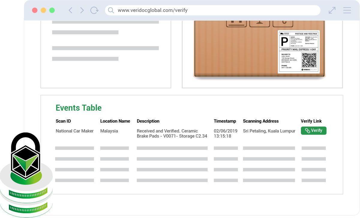 Vehicle parts are often counterfeited, swapped, or misrepresented leading to safety risks, warranty disputes, and financial losses. VeriDoc Global enables national car manufacturers to secure each component with a blockchain-backed QR code that proves origin, authenticity, and manufacturing details. A single scan reveals the true identity of every part, eliminating uncertainty and protecting both manufacturers and vehicle owners.
