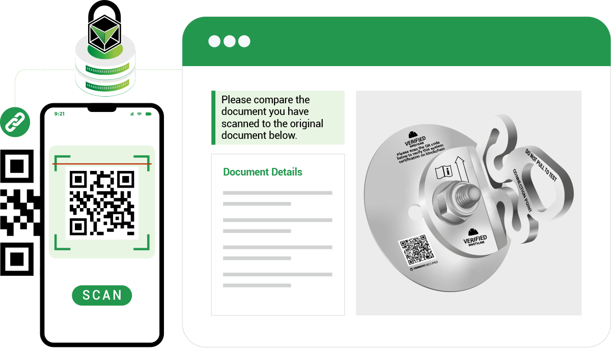 By combining QR code verification with secure ledger records, VeriDoc Global allows safety officers, inspectors, and workers to quickly confirm that safety equipment is genuine and compliant before it is used on site.