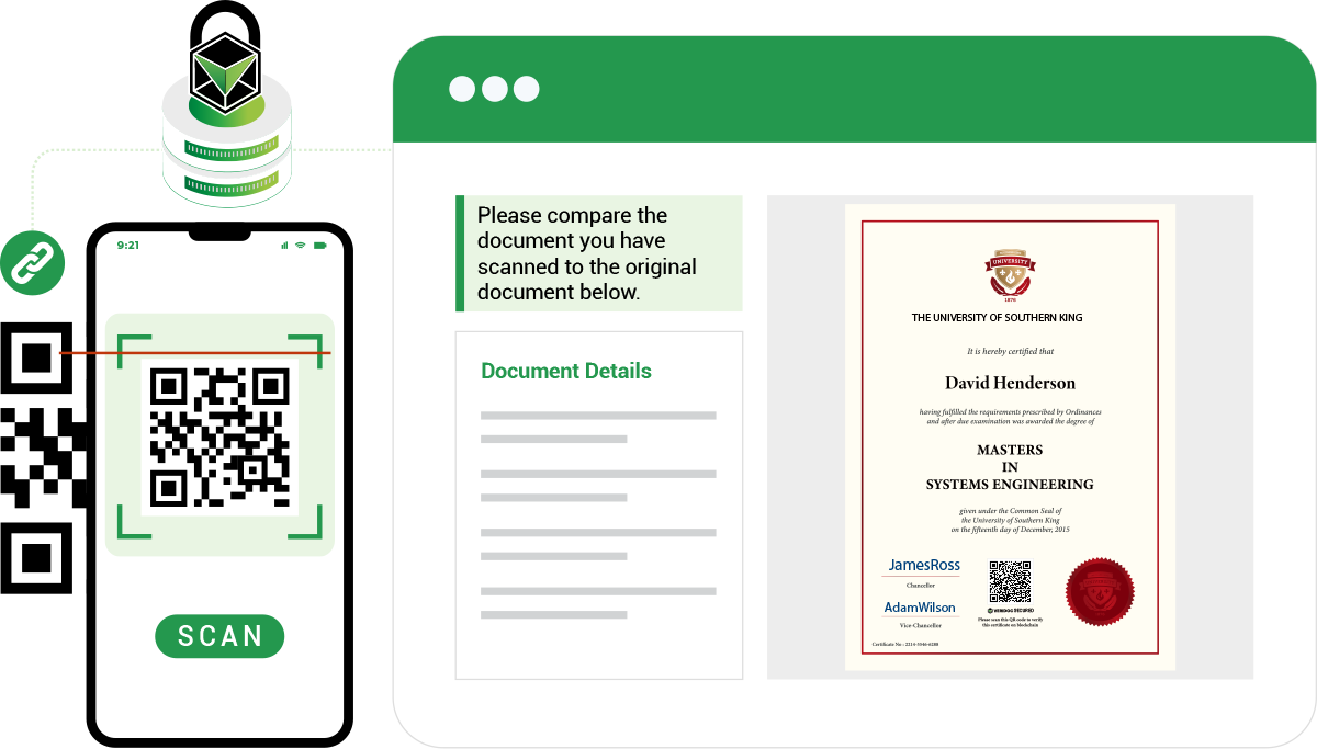 Leveraging the widespread familiarity of QR codes, VeriDoc Global makes document verification simple and accessible. By scanning a QR code on a document with a mobile phone, anyone can instantly verify whether the document is genuine or fraudulent, enabling secure, real-time verification anytime, anywhere.