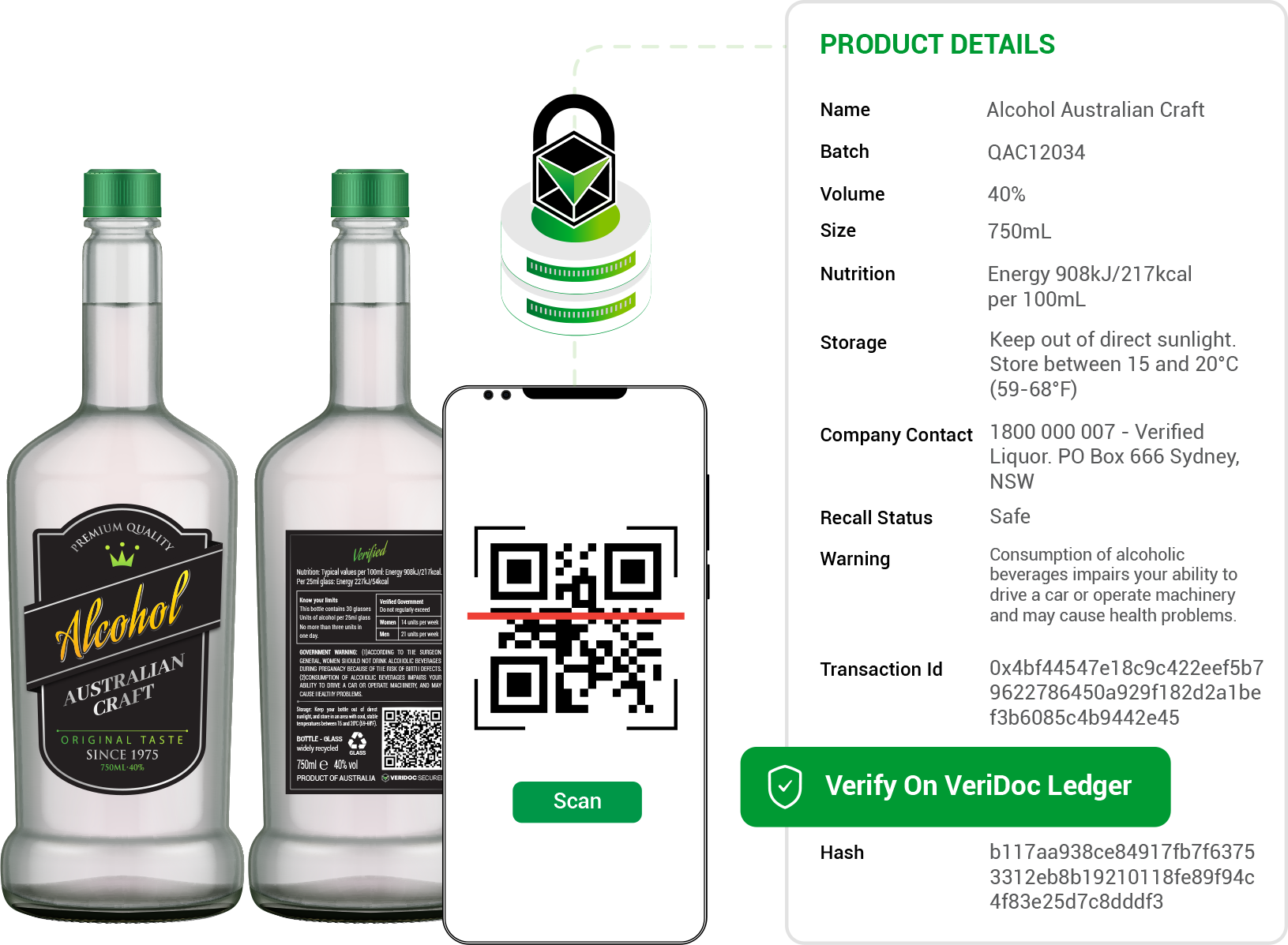 Australian craft alcohol brands often face issues with counterfeit bottling, unauthorized relabeling, and illicit refilling. VeriDoc Global secures each bottle with a blockchain-authenticated QR code that verifies origin, batch information, and production authenticity, ensuring consumers receive genuine craft-quality beverages.