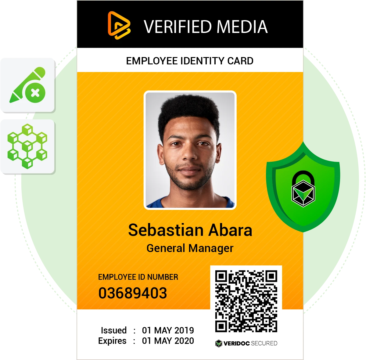 The Biometrics Employee ID Card enhances traditional identity verification by combining biometric data with blockchain security. This solution is ideal for high-security environments such as aviation, healthcare, manufacturing, and logistics. By linking biometric identifiers to an immutable digital record, VeriDoc Global creates a powerful multi-factor authentication system that eliminates impersonation and improves regulatory compliance.