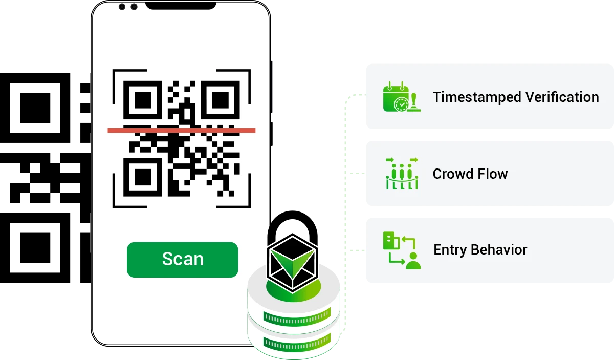 When scanned, the system compares the live ticket data with the stored hash and delivers an immediate authentication result. This eliminates manual validation and significantly reduces the risk of counterfeit or duplicated tickets being used.