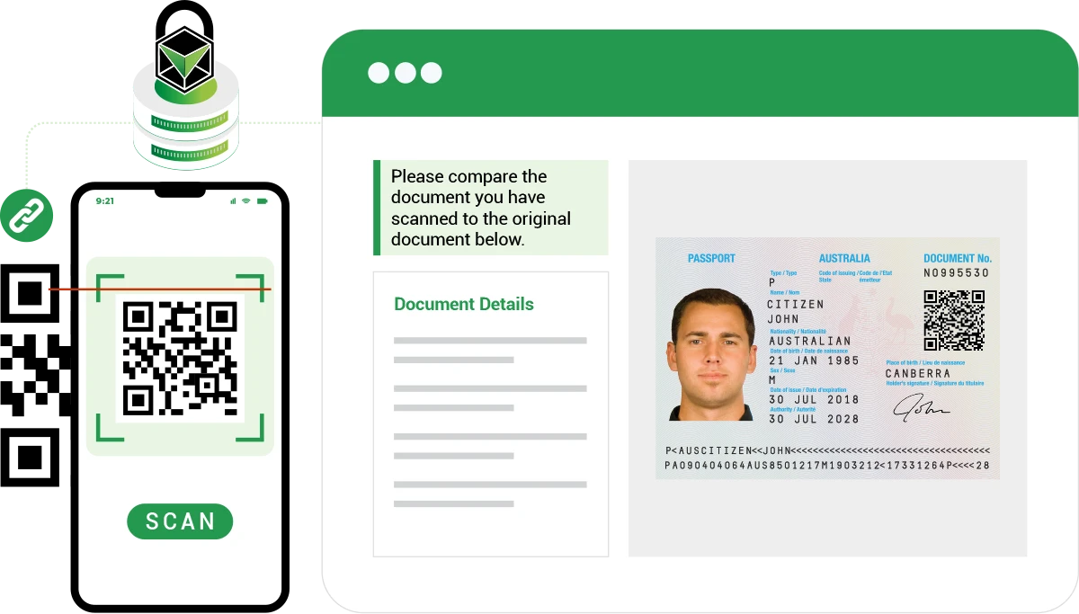 Instantly verify passports with secure, blockchain-anchored QR code authentication. Eliminate fraud and streamline passport checks with a fast, reliable scan.