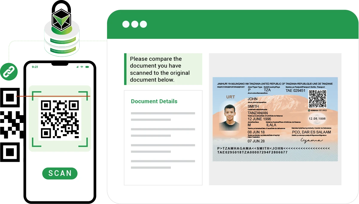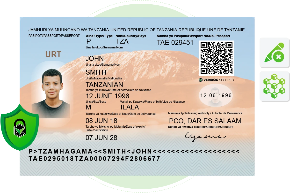 Tanzania’s passports are vulnerable to fraud, especially in cross-border checks and manual verification scenarios. VeriDoc Global can enhance security through blockchain-secured QR code authentication that verifies the passport’s origin, ownership, and validity in seconds.