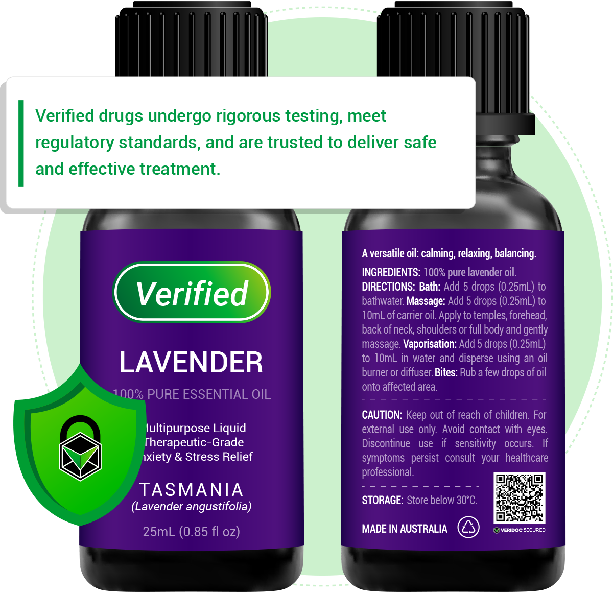 Essential oils like lavender are often diluted, chemically altered, or sold under false purity claims. VeriDoc Global can secure each bottle with a blockchain-backed QR code proving authenticity, purity, and true extraction origin.