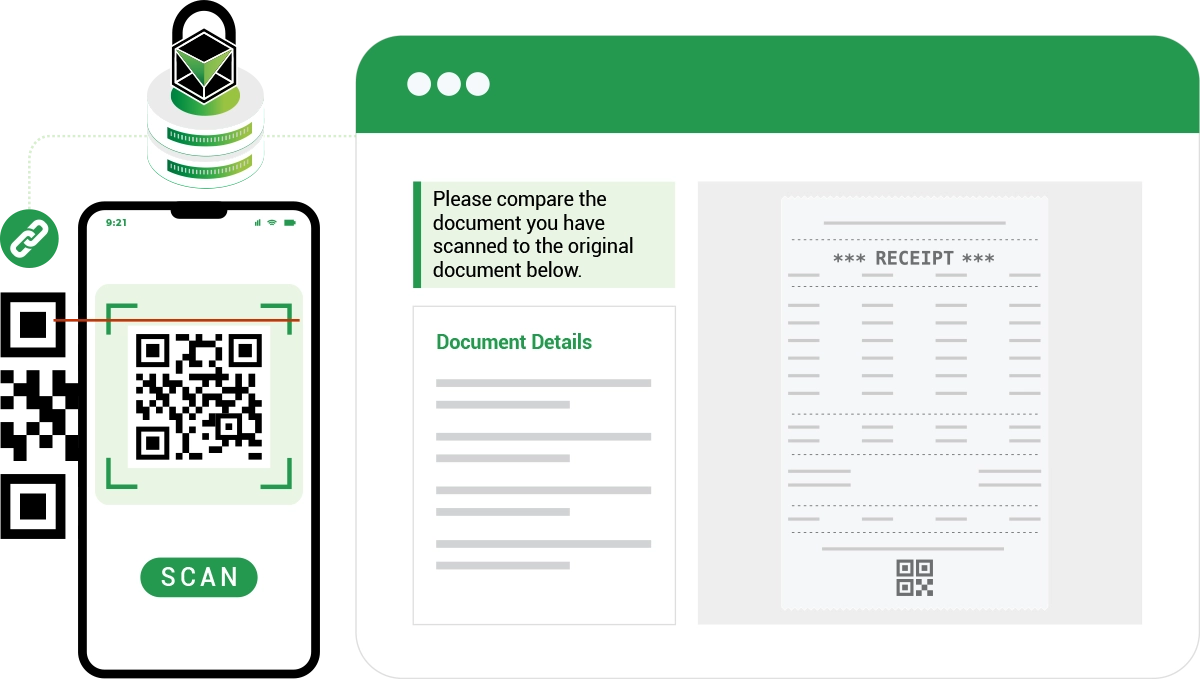 Every record is sealed with our patented QR code technology, allowing anyone to verify authenticity instantly, anywhere, on any device, without logins or downloads.