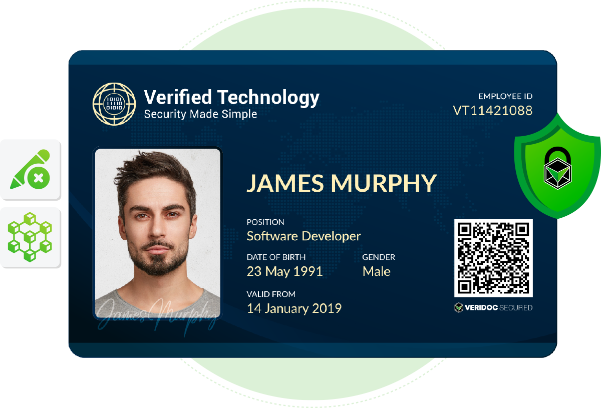 VeriDoc Global can secure employee IDs and links them to timesheets, creating a verifiable and tamper-proof record of each employee’s work history.